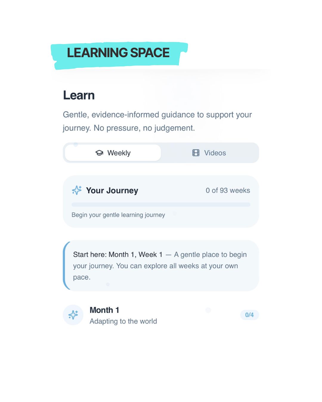 Weekly Guidance + short video lessons / Mindset: one step at a time